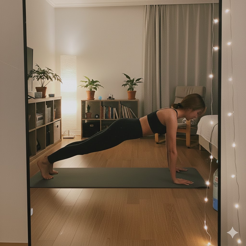 오늘 알려드린 동작들을 각각 1분씩, 총 3세트만 반복해도 땀이 비 오듯 쏟아질 거예요. 좁은 자취방에서도 층간소음 걱정 없이 내 몸에만 집중할 수 있는 시간이었길 바라요.